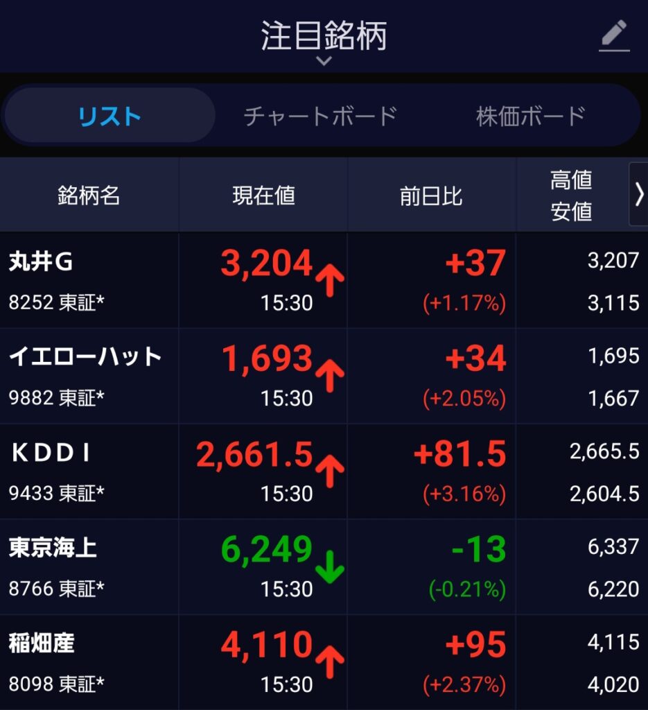 現在は、AIがリストアップしてくれた銘柄の中から、タイミングを見て買い増しするための「監視リスト(注目銘柄)」を作成しています。